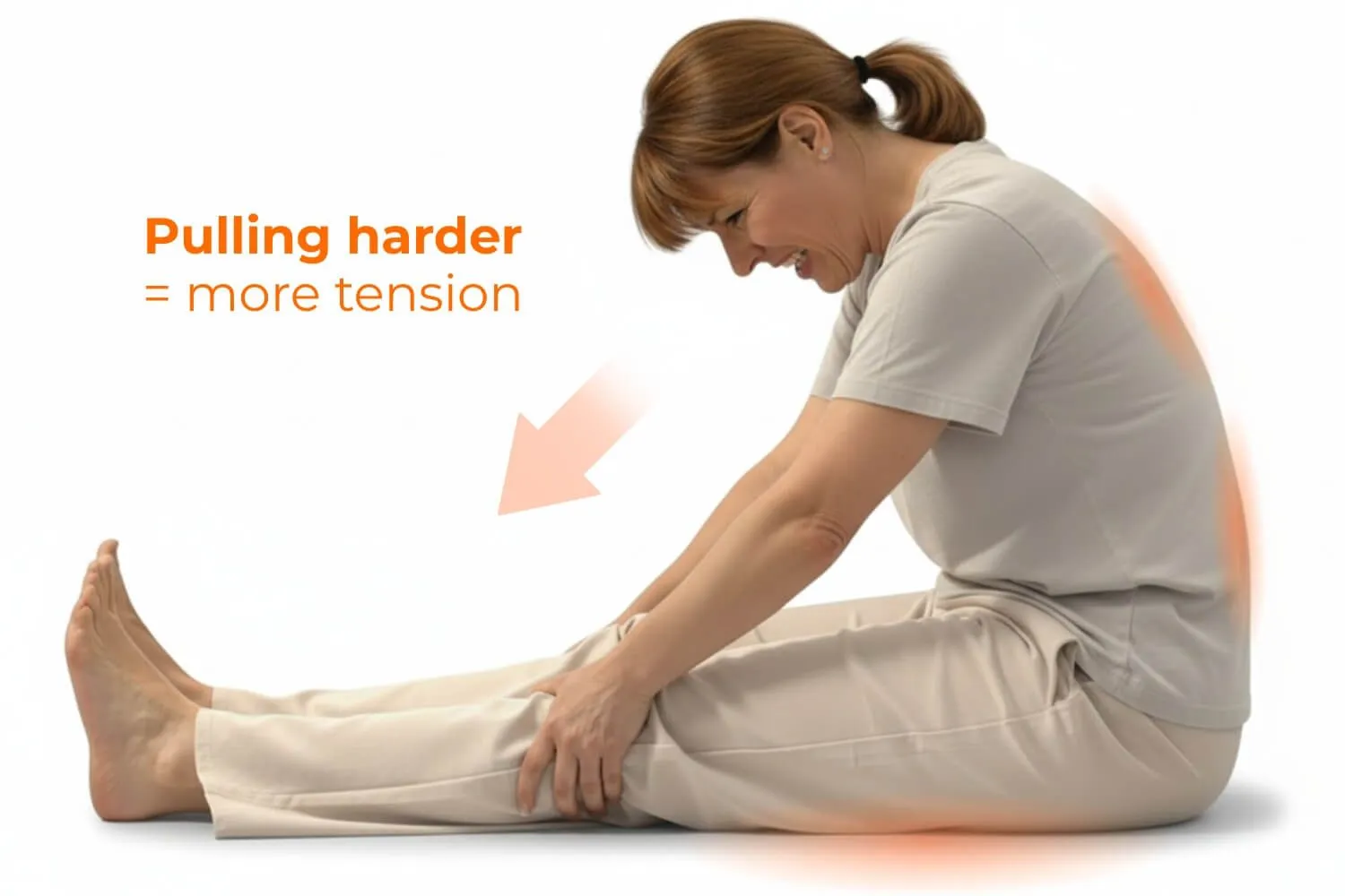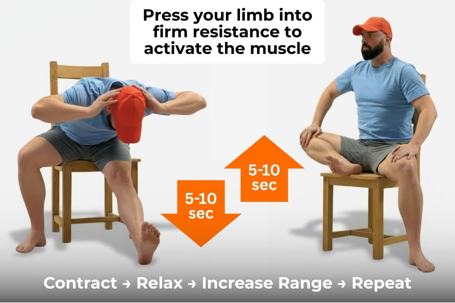 Instead of waiting or forcing more range, you add gentle, intentional tension by pressing your limb into firm resistance.