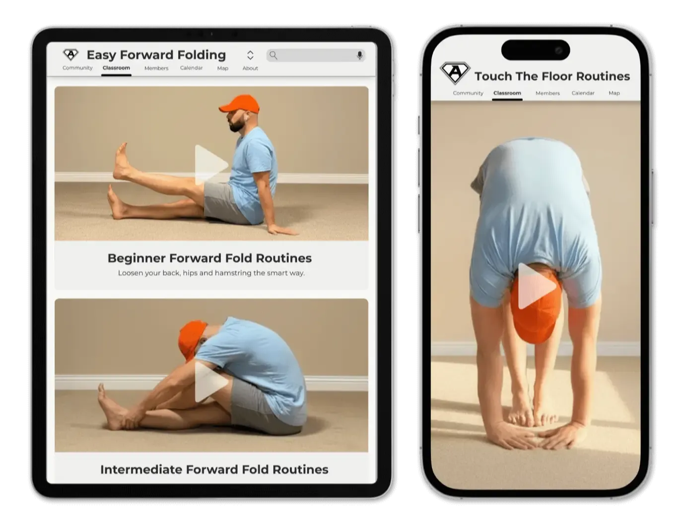 Focused sessions done just twice per week. Beginner to advanced flows made to help you progress toward splits without forcing or strain at any age.