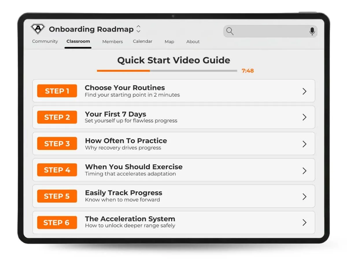 Know exactly where to begin and how to structure your sessions. A step by step onboarding guide that shows how to use the system, avoid mistakes and progress faster.